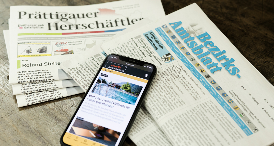Der «Prättigauer und Herrschäftler» Lokalzeitung für das Prättigau, die Bündner Herrschaft und den Kreis Fünf Dörfer, erscheint jeweils mittwochs und samstags (abonnierbar im Print oder online). Hier erhalten Sie mit dem Bezirks-Amtsblatt zudem Onlinezugriff auf alle amtlichen Publikationen für die Bezirke Landquart sowie Klosters/Davos. Immer auf dem neusten Stand über das, was in der Region los ist, sind Sie mit dem kostenlosen Angebot von www.vilan24.ch.